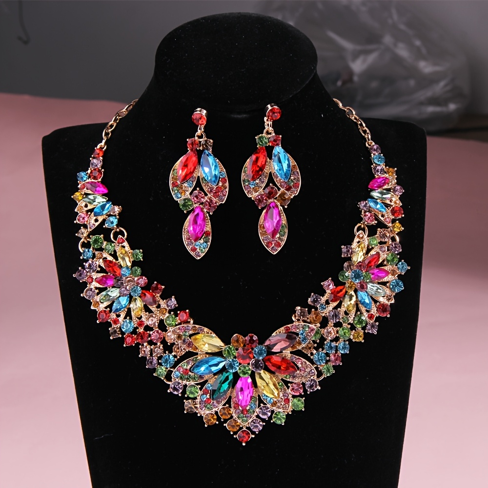 Make every event unforgettable with this gorgeous luxury colorful crystal bridal set, featuring a sparkling crown, matching necklace, and earrings. Perfect for weddings, parties, proms, or special celebrations, this set elevates any outfit with a glamorous, eye-catching look.