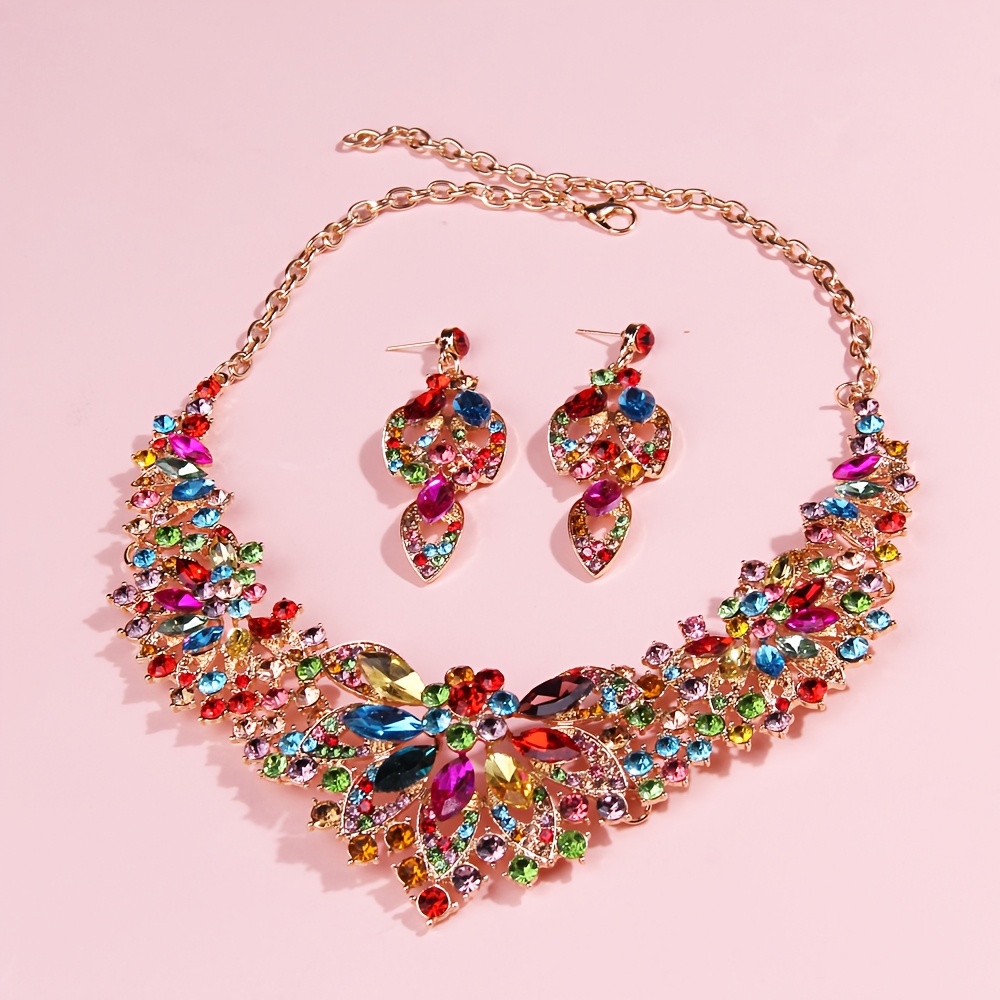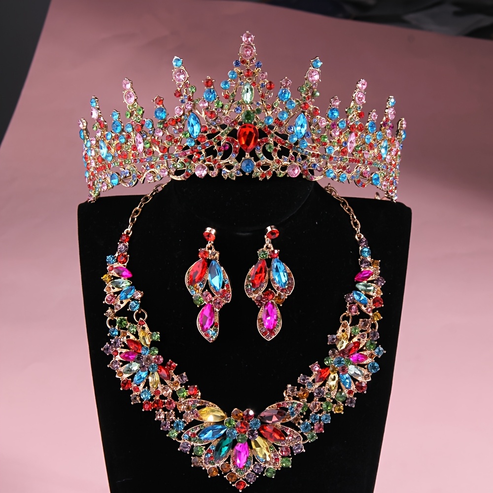 Luxury Colorful Crystal Bridal Headpiece & Jewelry Set – Crown, Necklace & Earrings for Weddings, Parties & Special Occasions