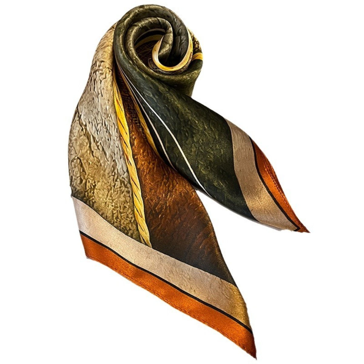Whether styled as a neck scarf, hair accessory, or decorative wrap on a handbag, this scarf brings a sophisticated and artistic flair to your look. Its compact 25.6-inch size is versatile enough to wear casually or for more formal occasions.