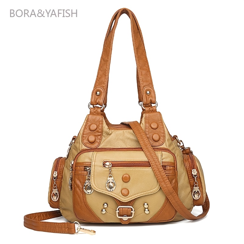 Women’s Rivet Washed Crossbody Bag – Soft Single-Shoulder Handbag with Large Capacity, Multi-Layer Design, Casual & Travel Bag