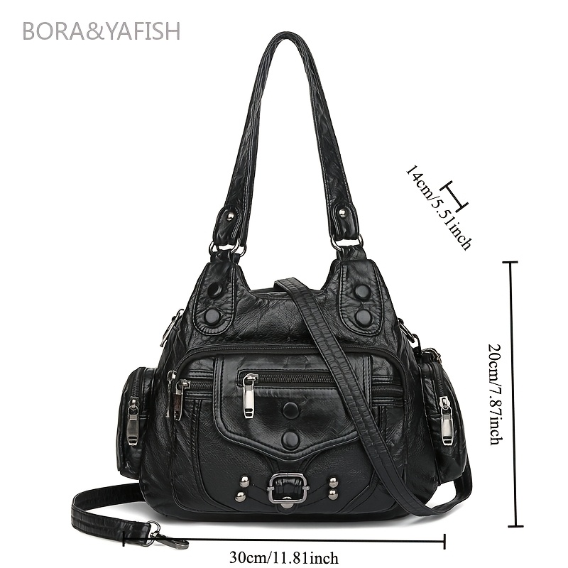 Package Includes: 1 × Women’s Rivet Washed Crossbody Bag