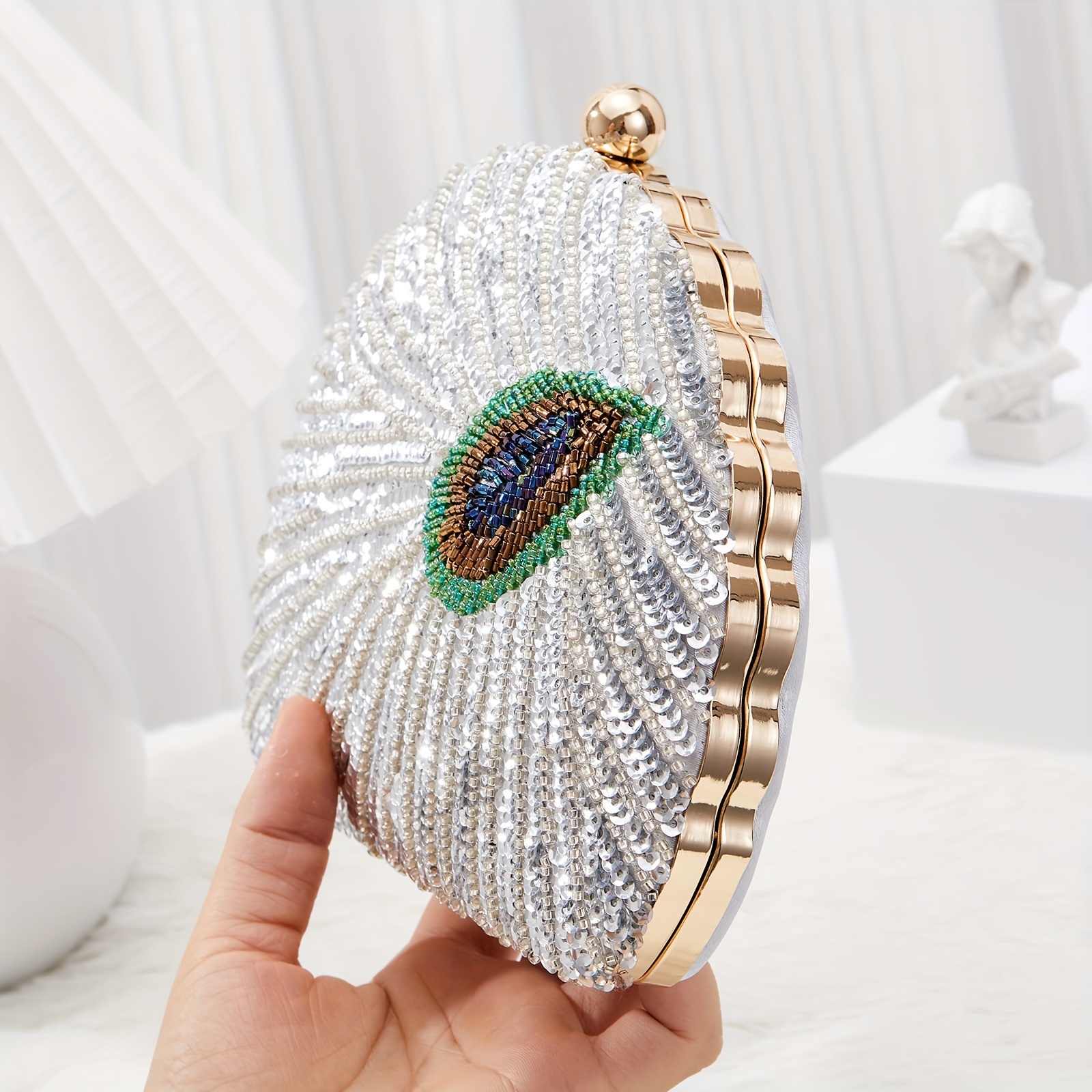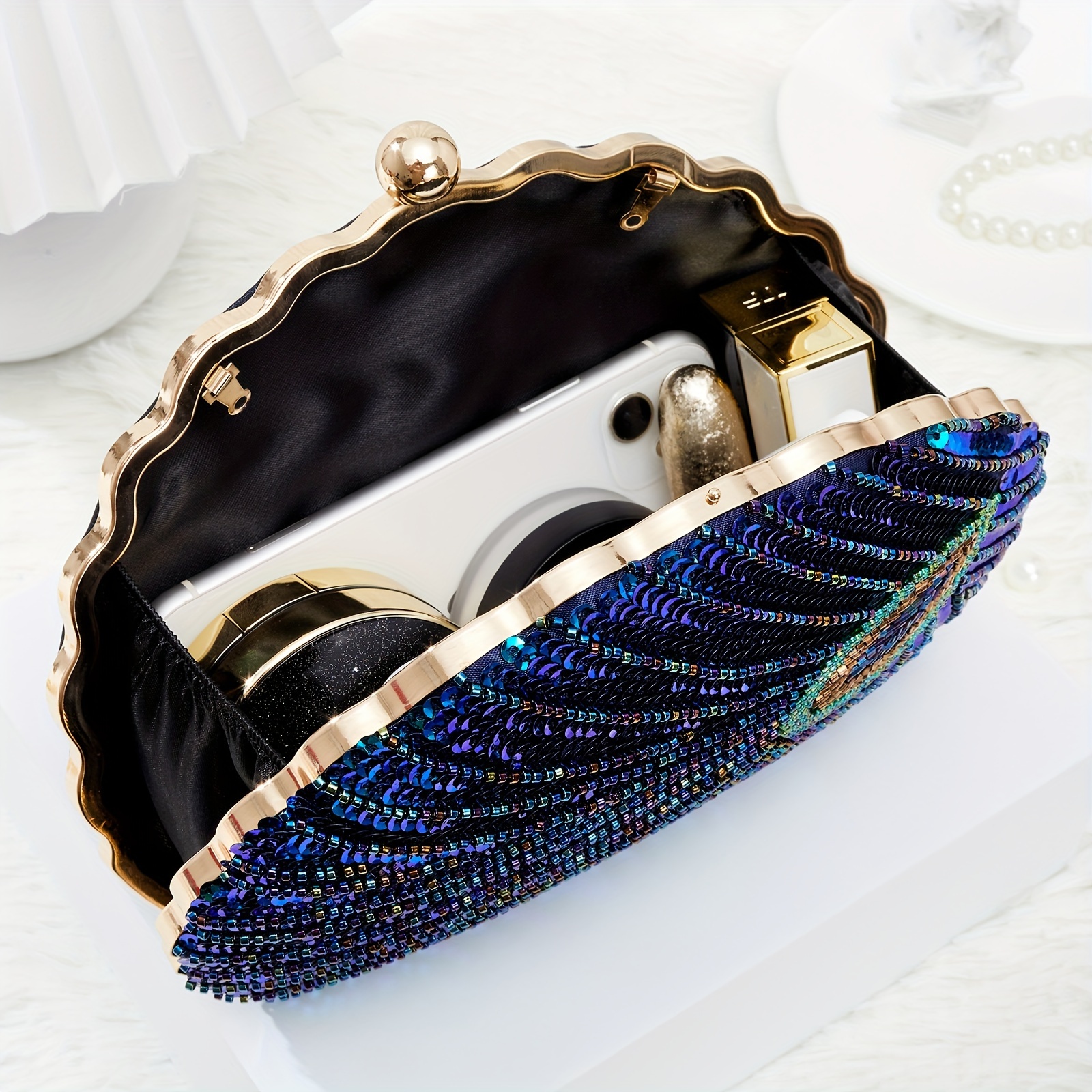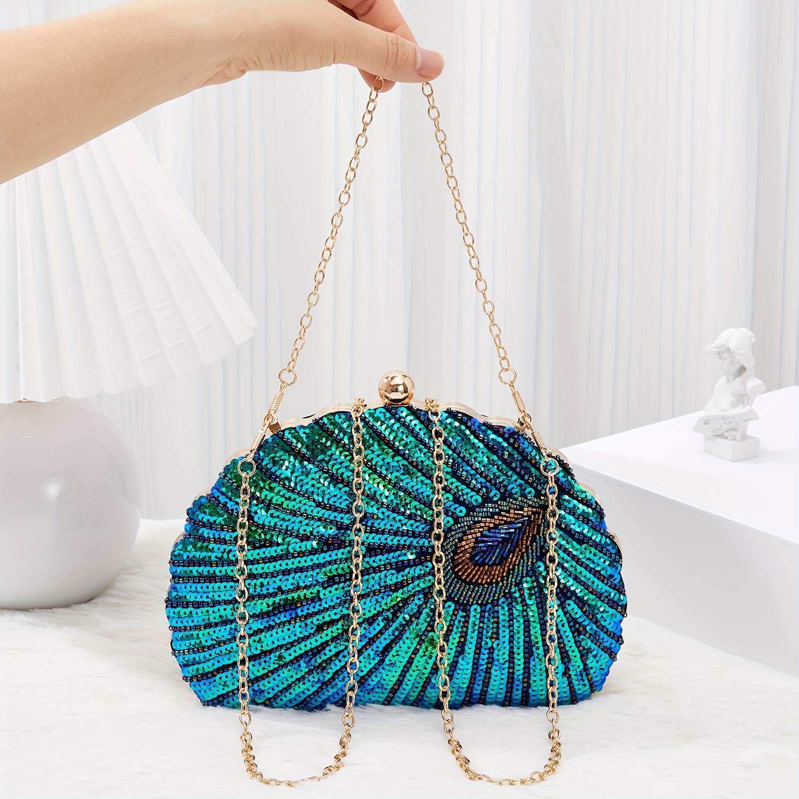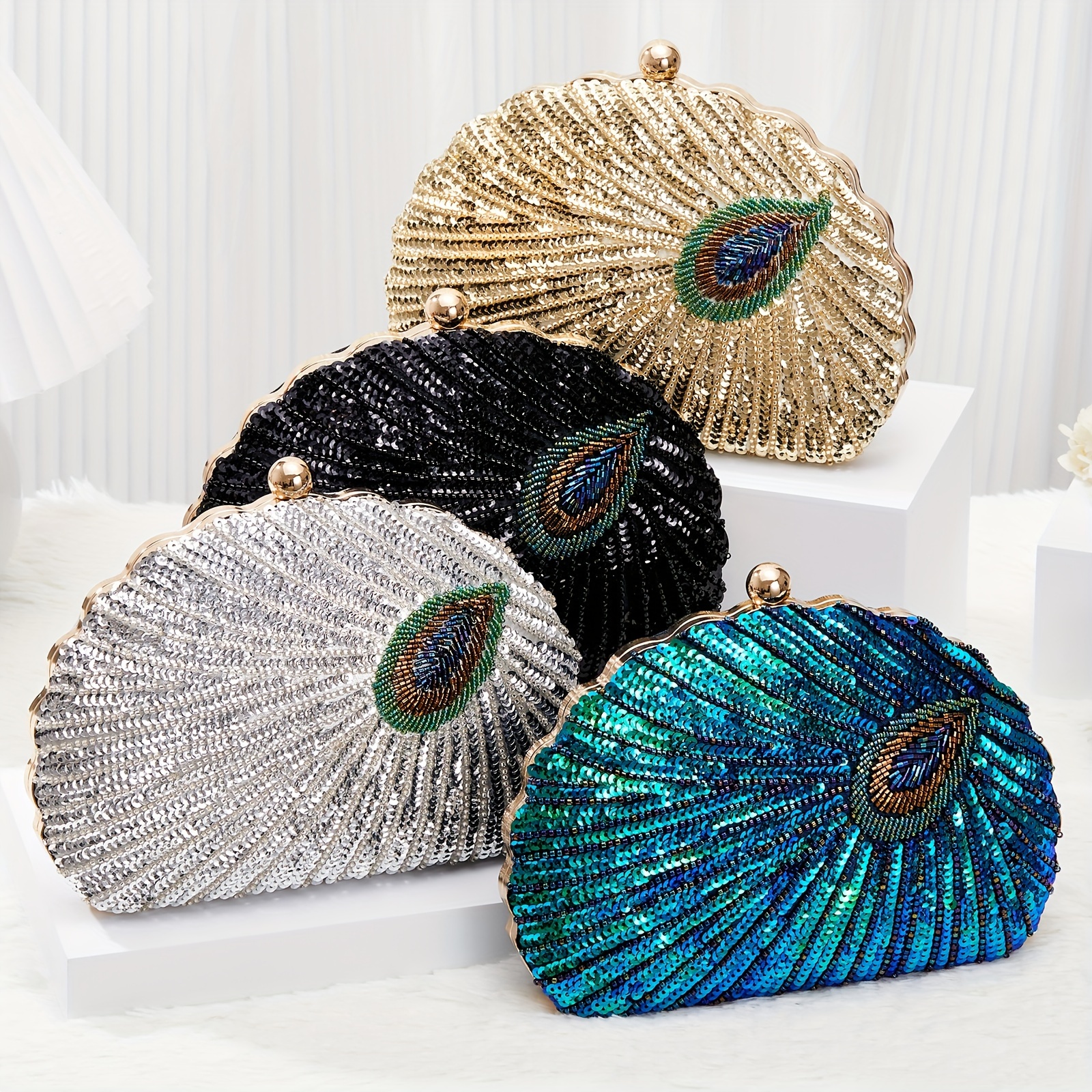 Package Includes: 1 × Peacock Sequin Evening Clutch